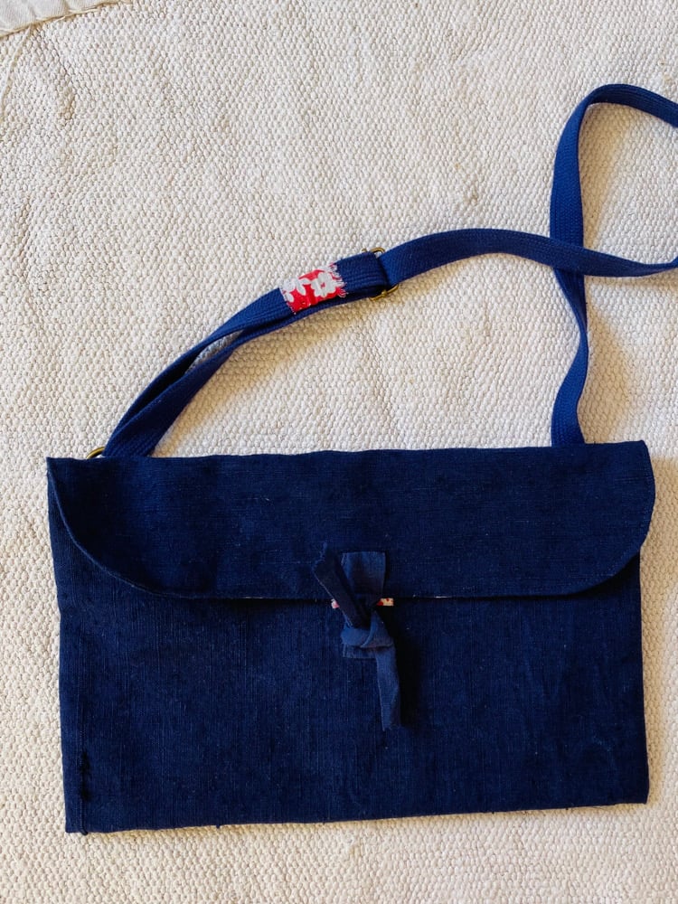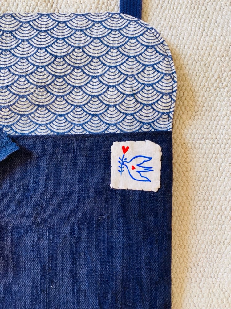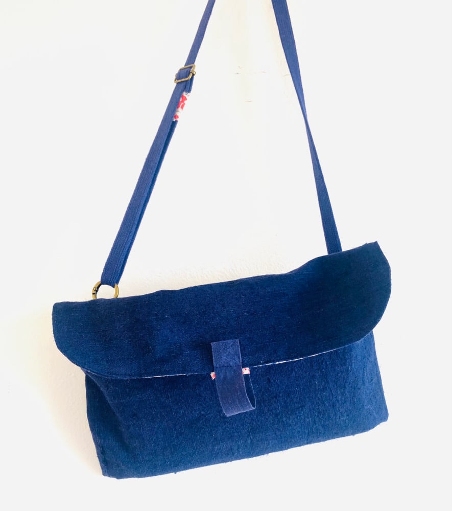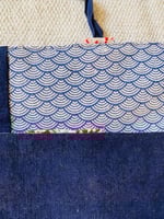 Beautiful indigo linen coming from an antique apron, inside with Japanese style fabric, inside pocket
