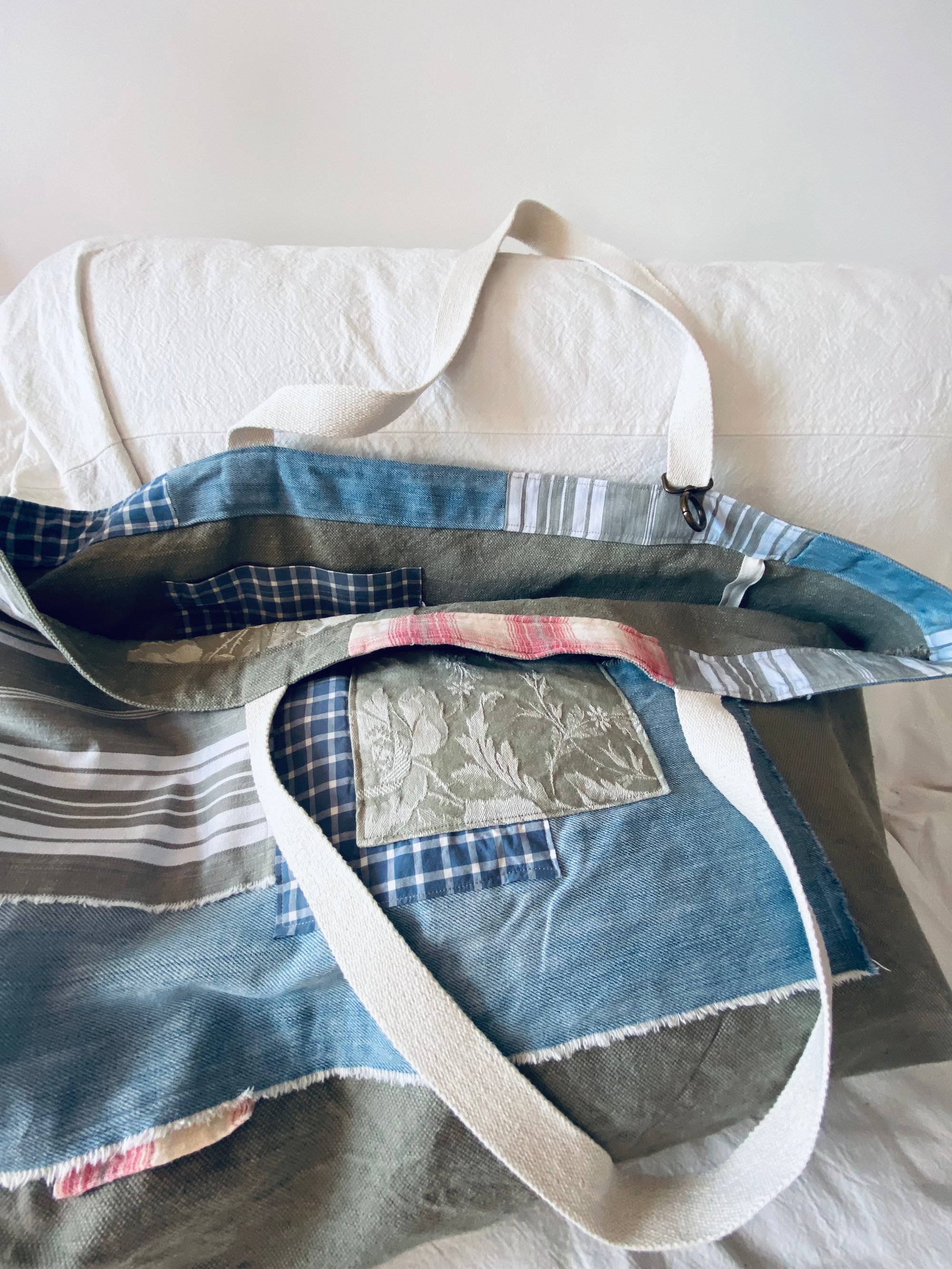 - upcycling, vintage fabrics, slow stitching, boro style, unique piece, hand made-