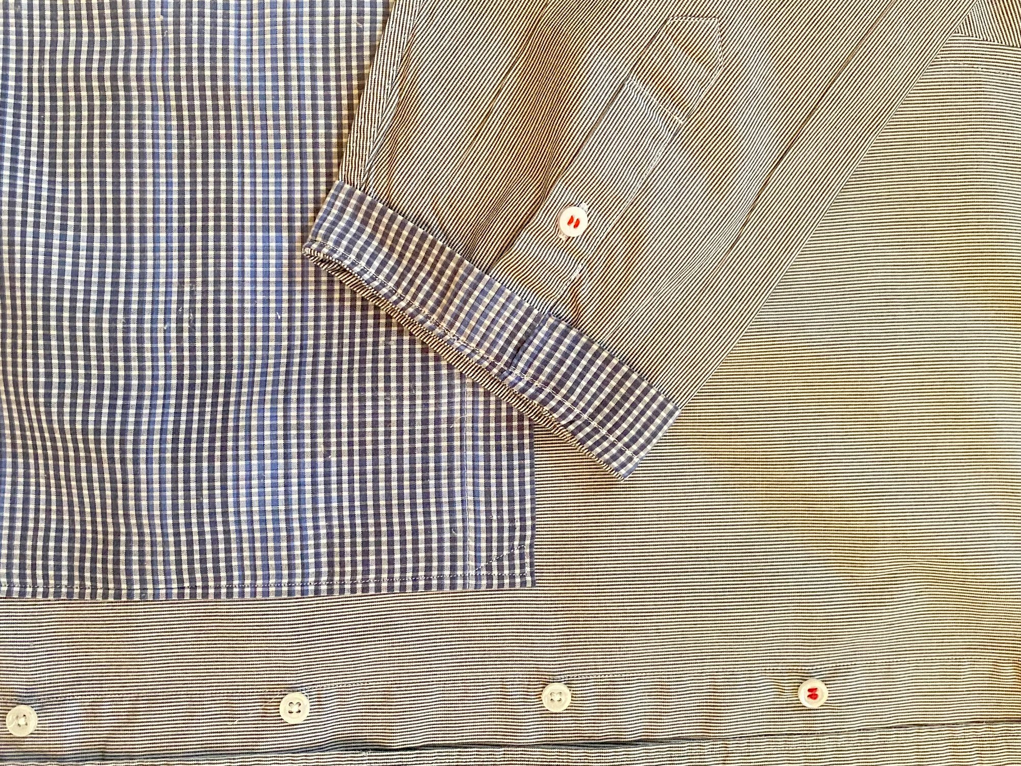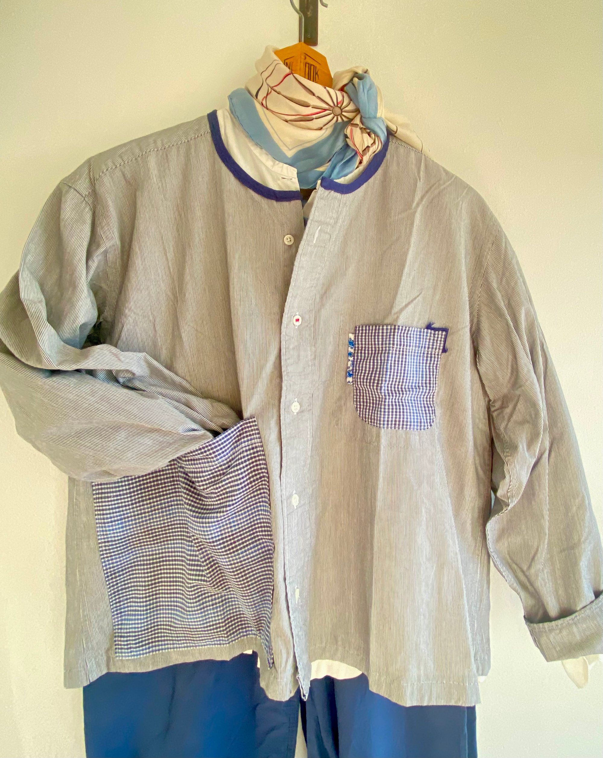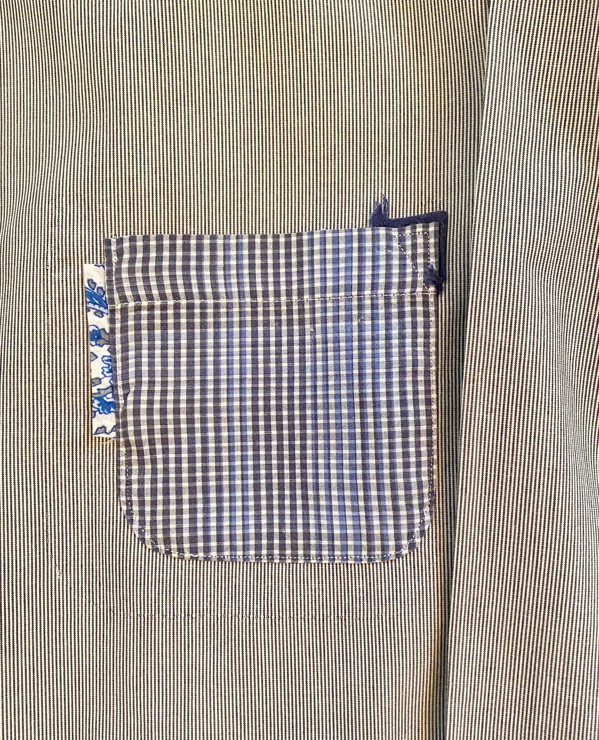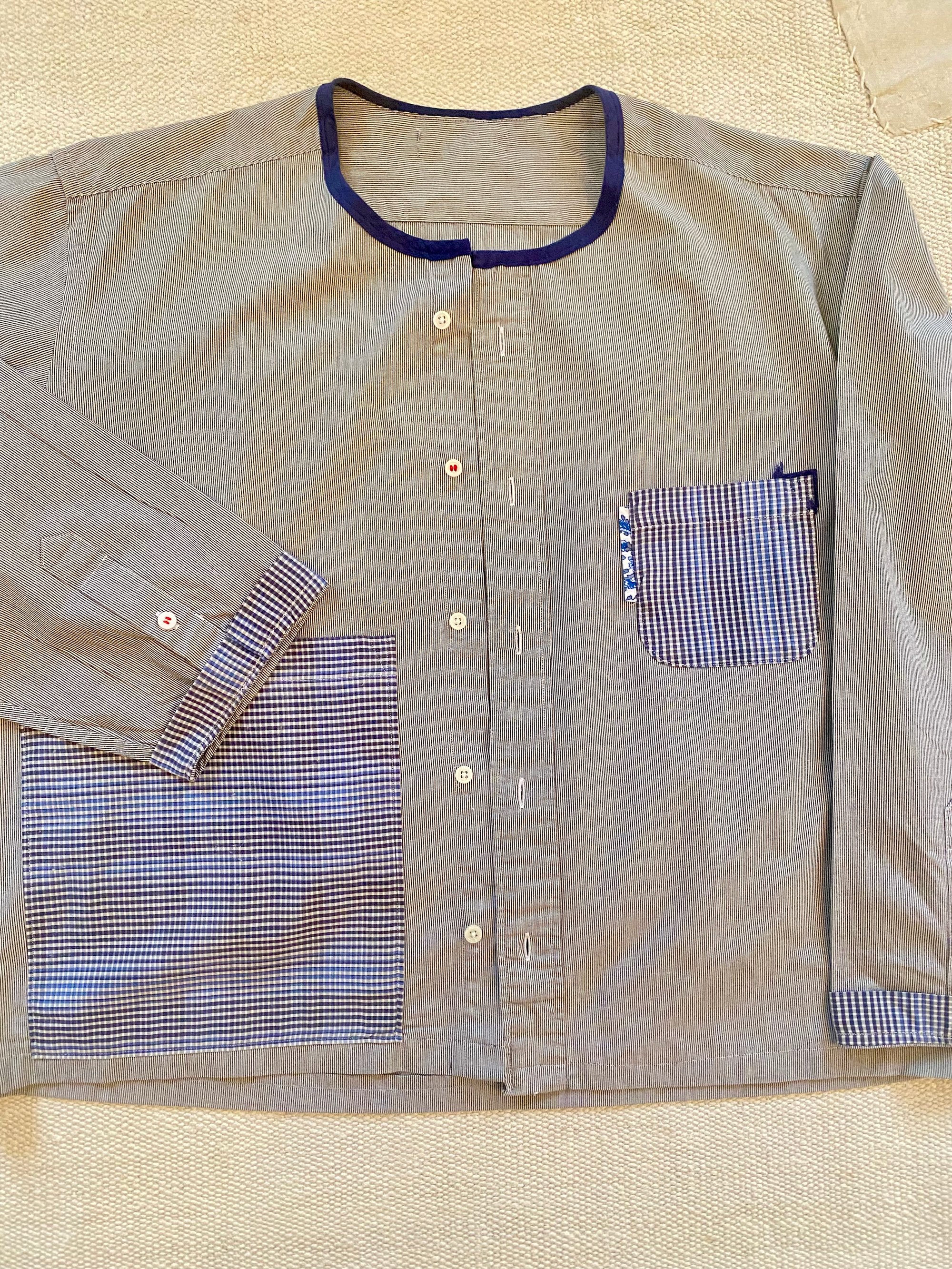 This jacket shirt is a one-of-a-kind piece, created from a carefully sourced vintage shirt chosen for the quality of its cotton and the beauty of its naturally aged patina.